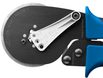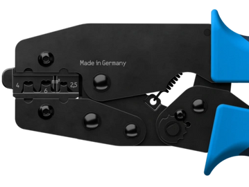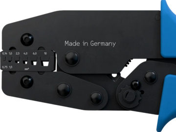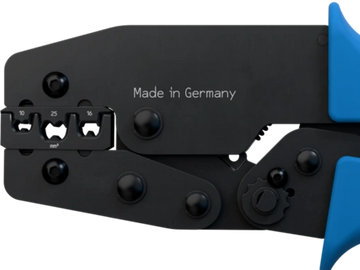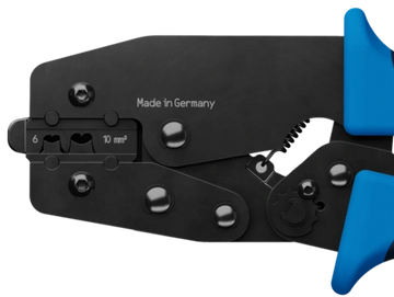 For wire end sleeves with and without insulating collar according to DIN 46228 | EN 50027. Precise hexagonal crimp over the entire sleeve length. Thanks to the swivel positioner, even smaller cross-sections can now be processed easily, quickly and safely.