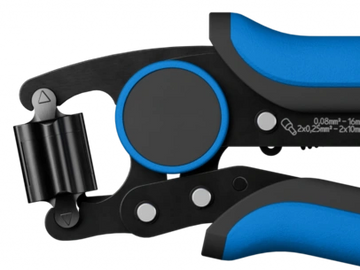 Crimping of wire-end ferrules in trapezium shape with and without insulating collars up to a length of 18 mm from 0.08 to 16.0 mm² and twin ferrules from 2x 0.25 to 2x 10.0 mm² in just one tool.