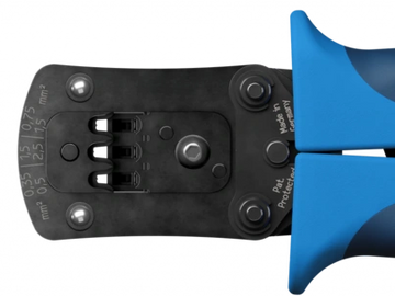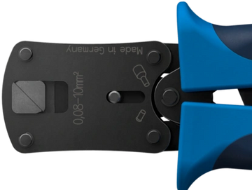 Crimping of wire-end ferrules in square shape with and without insulating collars up to a length of 18 mm from 0.08 to 16.0 mm² and twin ferrules from 2x 0.25 to 2x 10.0 mm² in just one tool.